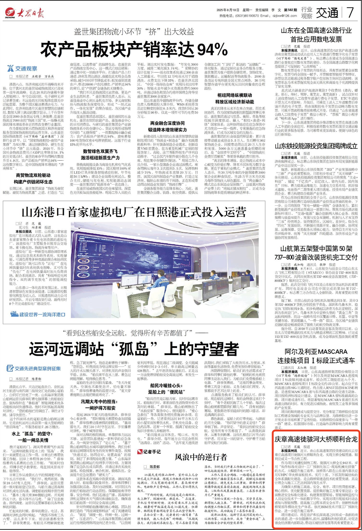 【大众日报】庆章高速徒骇河大桥顺利合龙