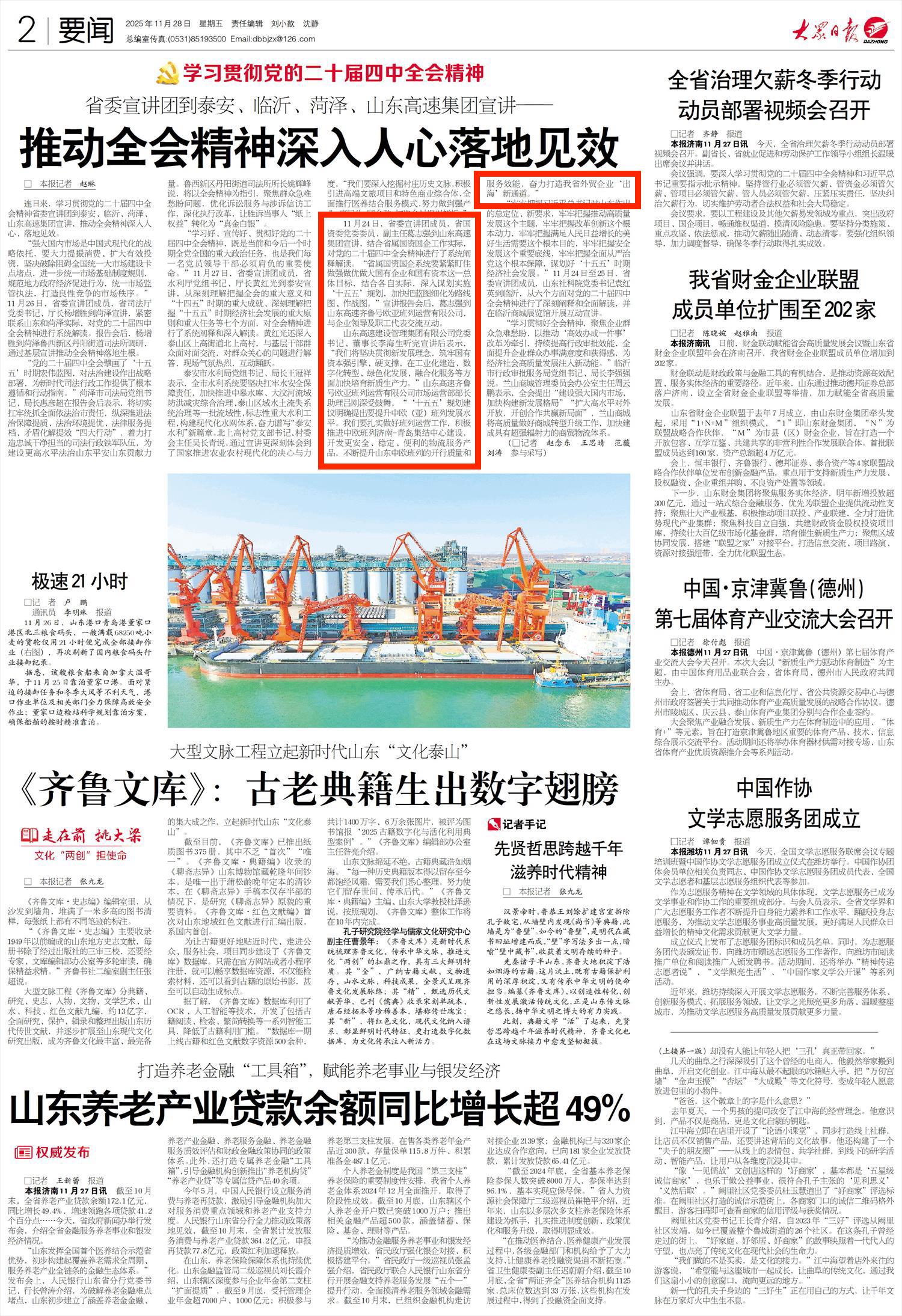 【大众日报】省委宣讲团到泰安、临沂、菏泽、山东高速集团宣讲——推动全会精神深入人心落地见效
